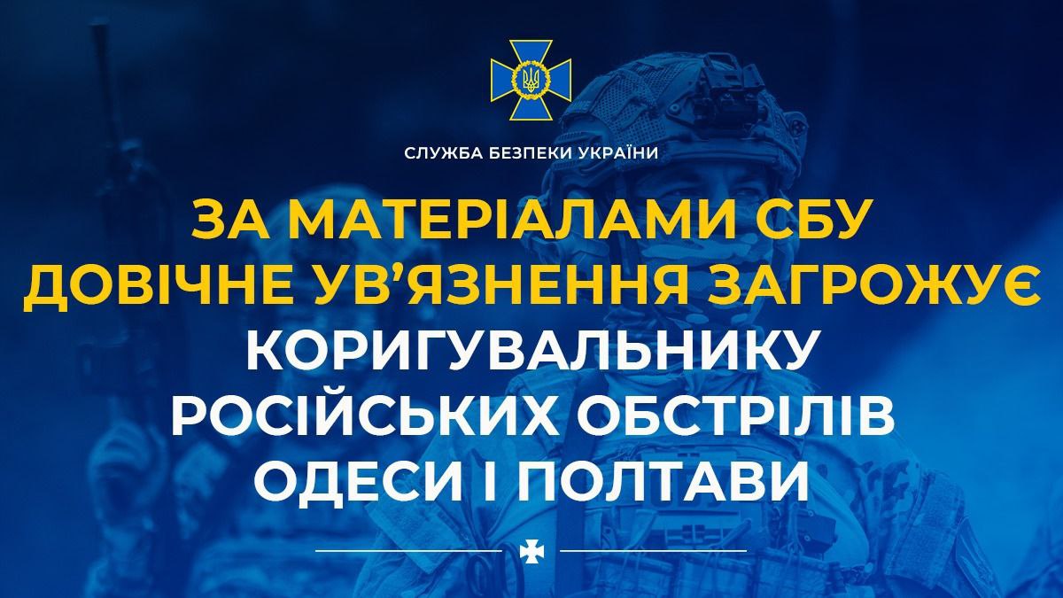 За матеріалами СБУ довічне ув’язнення загрожує коригувальнику російських обстрілів Одеси і Полтави