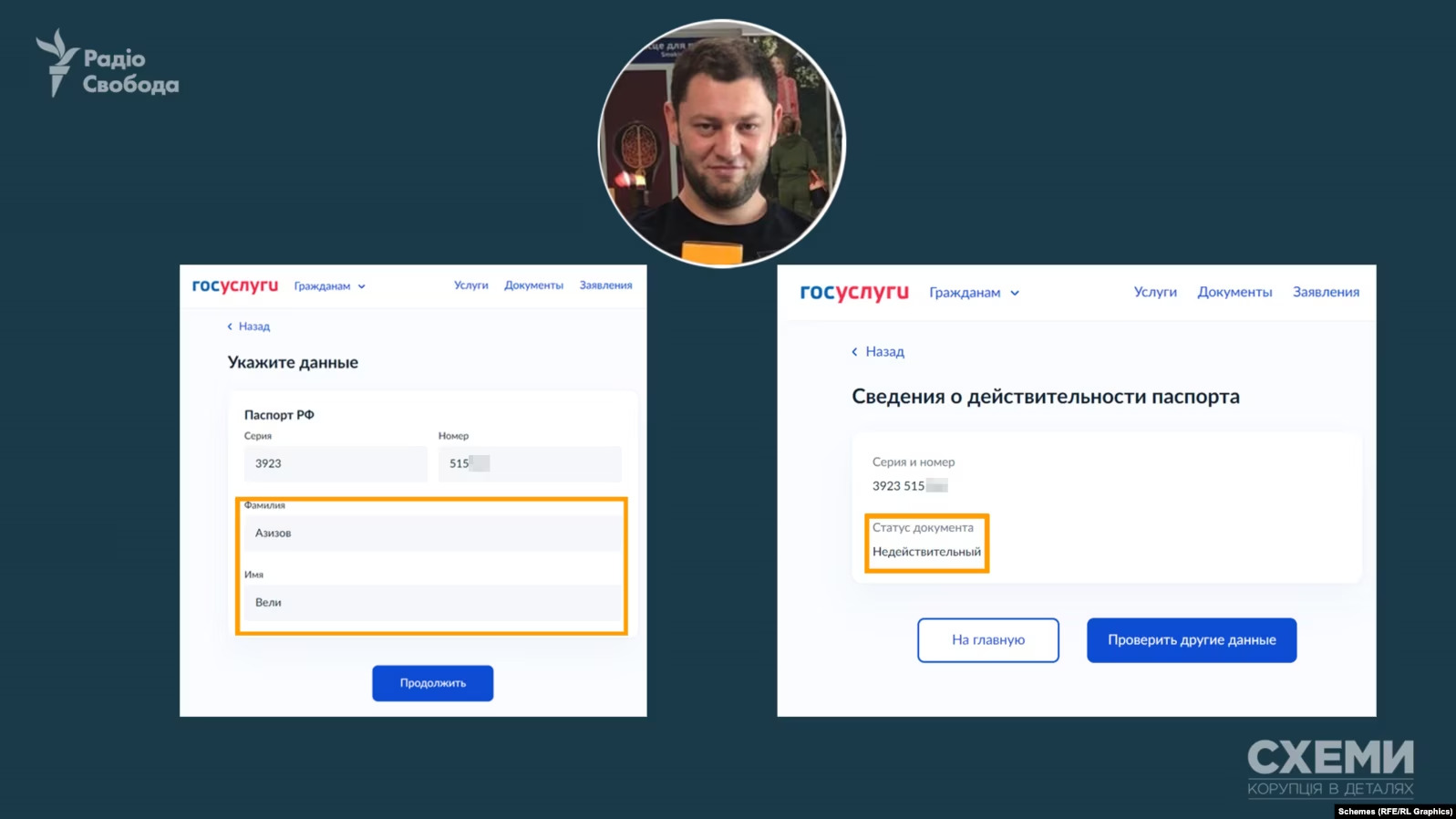 Журналісти "Схем" встановили, що ймовірні підозрювані у вбивстві російського агента Андрія Портнова - брати Олександр та Велі Азізови - мають громадянство РФ.