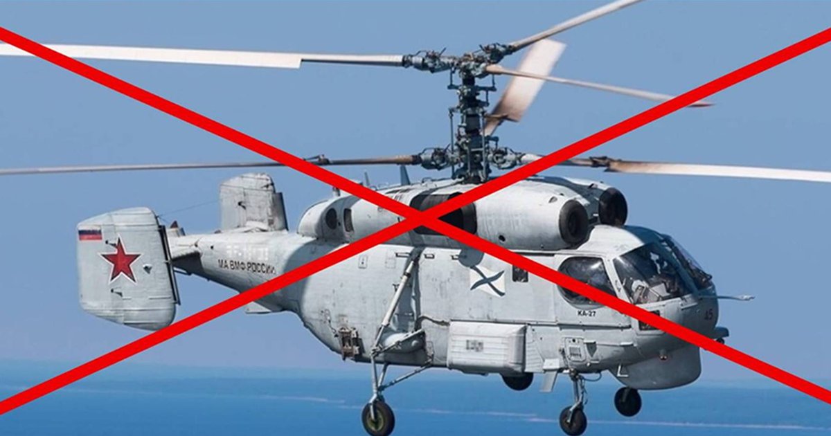 Сили оборони знищили російський корабельний протичовновий вертоліт Ка-27 над акваторією Чорного моря.