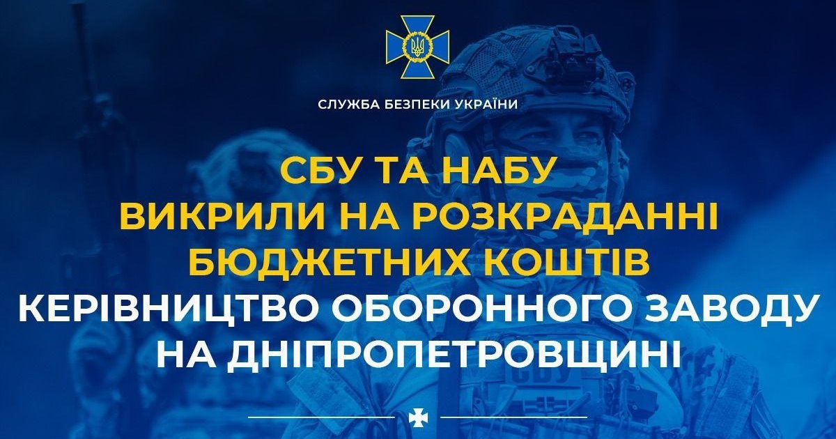 СБУ та НАБУ викрили на розкраданні бюджетних коштів дирекцію оборонного заводу на Дніпропетровщині