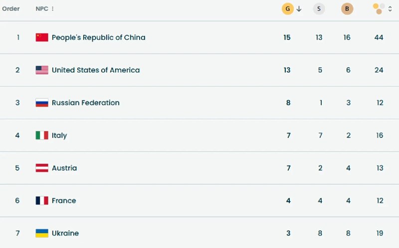 Другу сходинку посіли США з активом у 24 медалі (13-5-6), а замкнули трійку представники країни-агресора, які здобули 12 нагород (8-1-3).