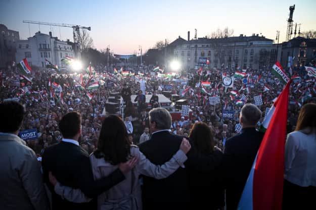 Прем’єр-міністр Угорщини Віктор Орбан та його головний політичний суперник, лідер партії "Тиса" Петер Мадяр, провели масштабні мітинги у Будапешті з нагоди національного свята 15 березня напередодні парламентських виборів.
