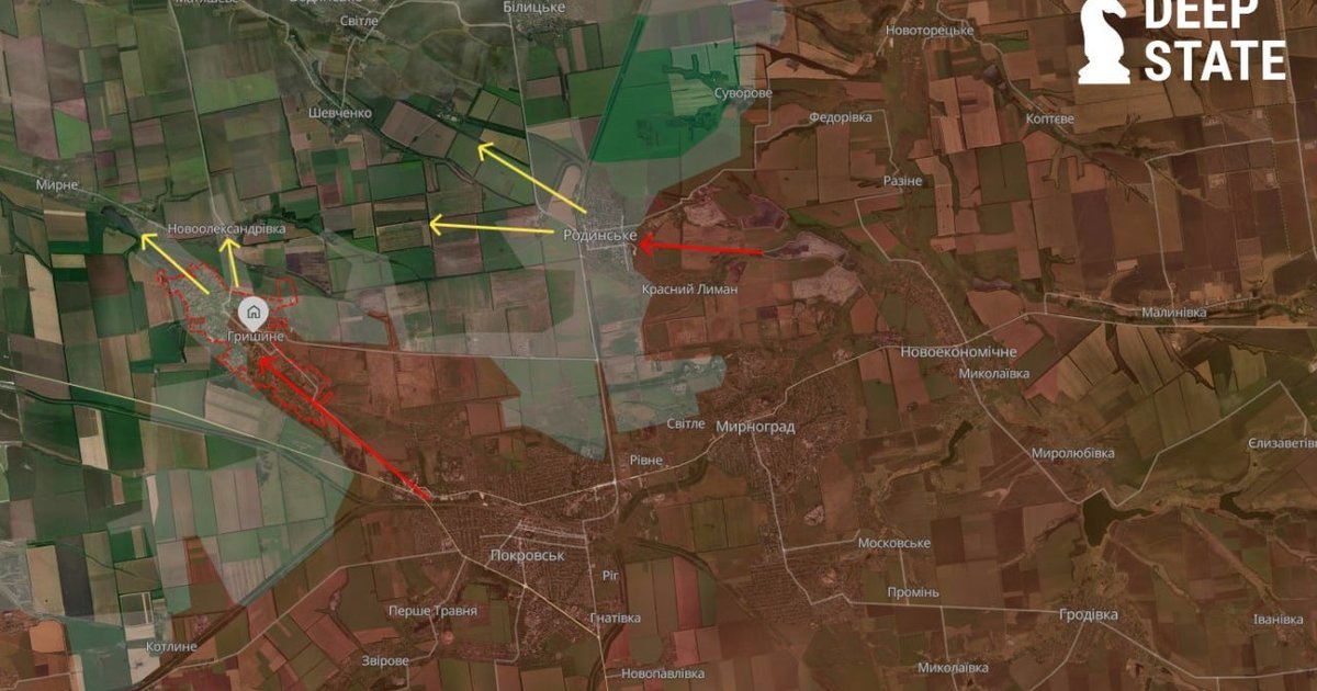 У DeepState зазначаюють, що росіяни продовжують здійснювати активний тиск на Гришине, поступово затягуючи туди свою піхоту.