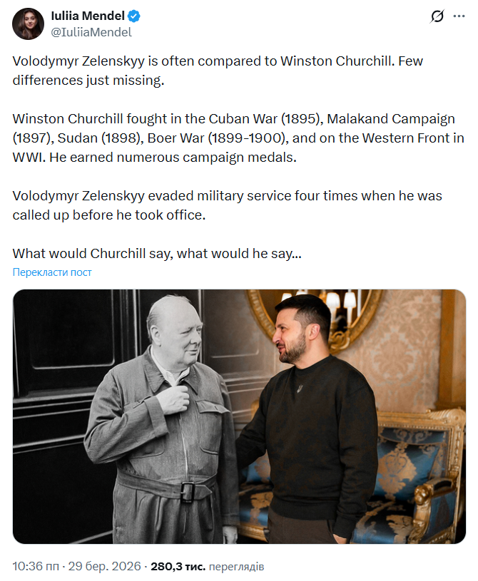 Зеленський 4 рази ухилявся від військової служби, але його часто порівнюють із Черчиллем, - Мендель