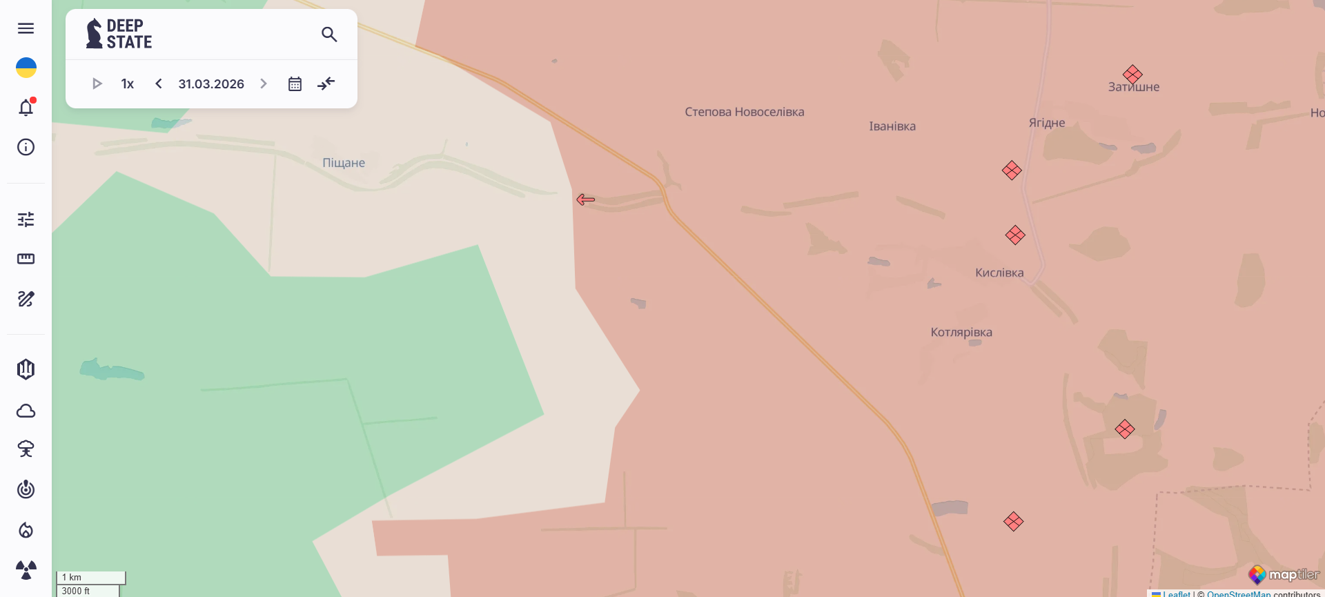 "Мапу оновлено. Ворог просунувся поблизу Піщаного ( селище у Куп'янському районі Харківської області) та Новопавлівки (село Дружківської міської громади Краматорського району Донецької області)", - йдеться у повідомленні.
