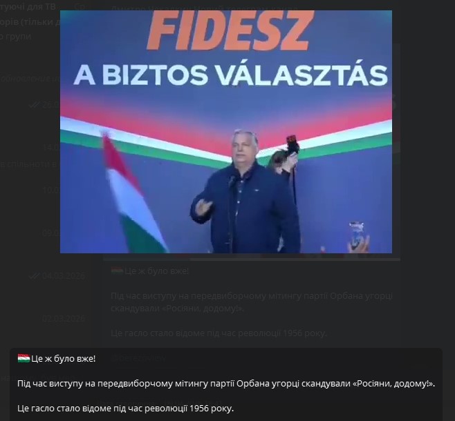 Лідер угорської опозиційної партії Петер Мадяр під час передвиборчого мітингу публічно звернувся до російського кореспондента, який був присутній на мітингу.