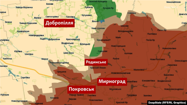 Паралельно погіршується ситуація на флангах агломерації: російські війська зайняли нові позиції в Родинському на північ від Мирнограда та просунулися у сусідньому селі Красний Лиман, повідомив 17 квітня проєкт DeepState.