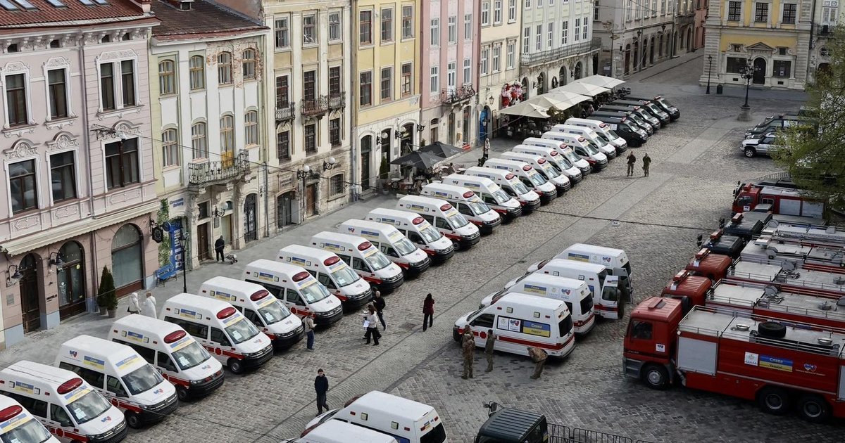 У Львові відбулася найбільша в історії міста передача транспорту для екстрених служб України: 68 спеціалізованих автомобілів передали громадам сходу, півдня та центру країни за підтримки Тайваню.
