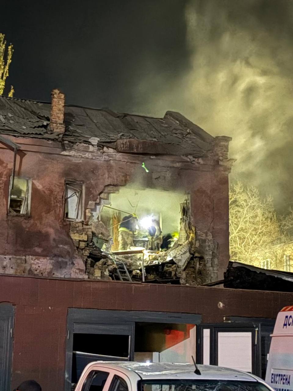 Також ворожий БпЛА поцілив у 2-поверховий будинок. На жаль, 2 людини загинули, одна особа постраждала. Евакуйовано 16 мешканців з будівлі.