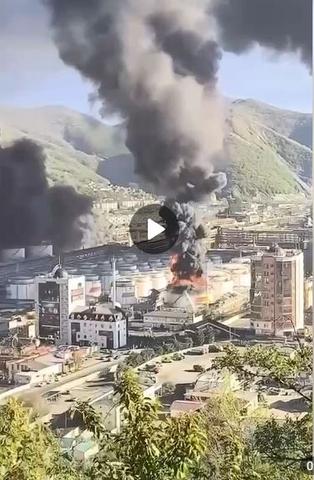 На світлинах видно сильне задимлення внаслідок пожежі, що може вказувати на ураження інфраструктури, що відповідає за переробку нафтопродуктів.