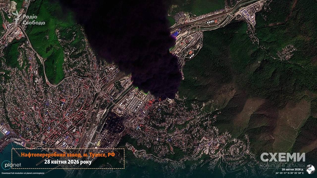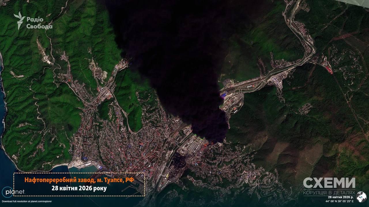 - У ніч на 28 квітня безпілотники знову атакували Туапсинський нафтопереробний завод у Туапсе.