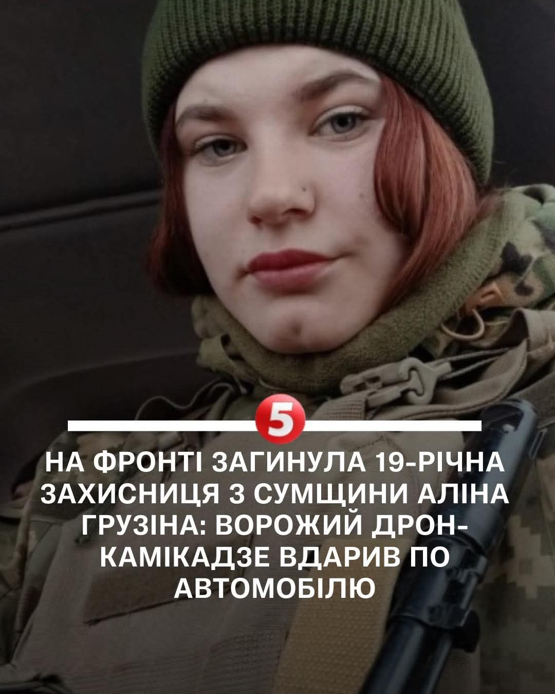 22 квітня 2026 року під час виконання бойового завдання на Донеччині загинула 19-річна військовослужбовиця Аліна Грузіна.