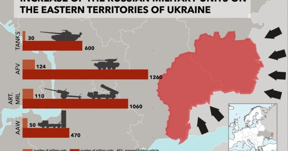 Зокрема, кількість танків з початку агресії влітку 2014 року до серпня 2016 зросла з 30 до 600 одиниць, кількість бойових броньованих машин - зі 124 до 1260, артилерії і реактивних установок залпового вогню - зі 110 до 1060 одиниць, зенітних установок - з 50 до 470.