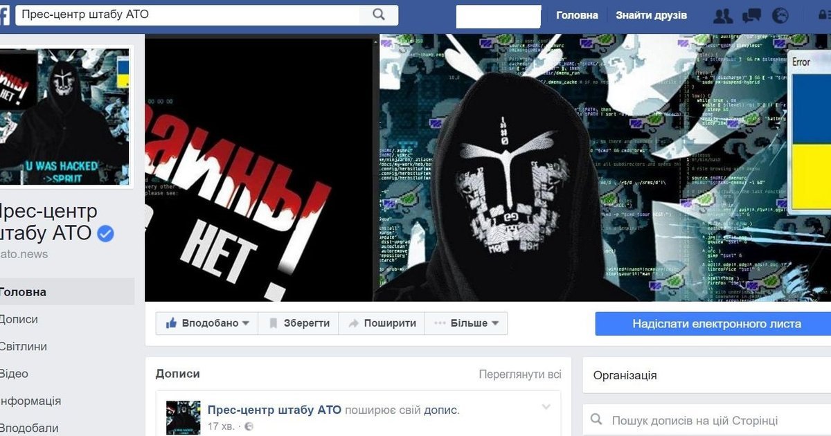 Хакери терористів зламали сторінку прес-центру штабу АТО у Фейсбуці
