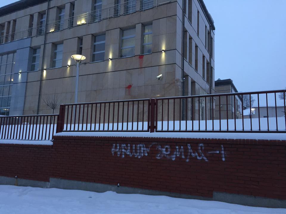 Вночі 8 лютого невідомі розписали паркан польського консульства у Львові на вул. Івана Франка, 108. На паркані з'явився напис білою фарбою "Наша земля", а також плями червоної фарби на будівлі консульства. Про це ZAXID.NET повідомили у відділі комунікації Головного управління Національної поліції у Львівській області, передає Цензор.НЕТ.Зараз на місці події працюють правоохоронці, а також був присутній керівник ГУ НП у Львівській області Валерій Середа. Обставини події з'ясовуються, на місце також виїхав консул Польщі у Львові. Вирішується питання про відкриття кримінального провадження.