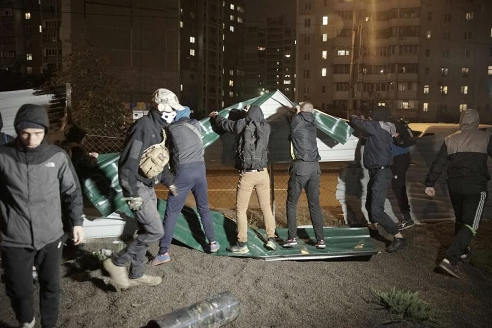 "Національний корпус" і жителі столичних Позняків розгромили недобудовану АЗС. Виникли сутички з поліцією. ФОТОрепортаж+ВІДЕО