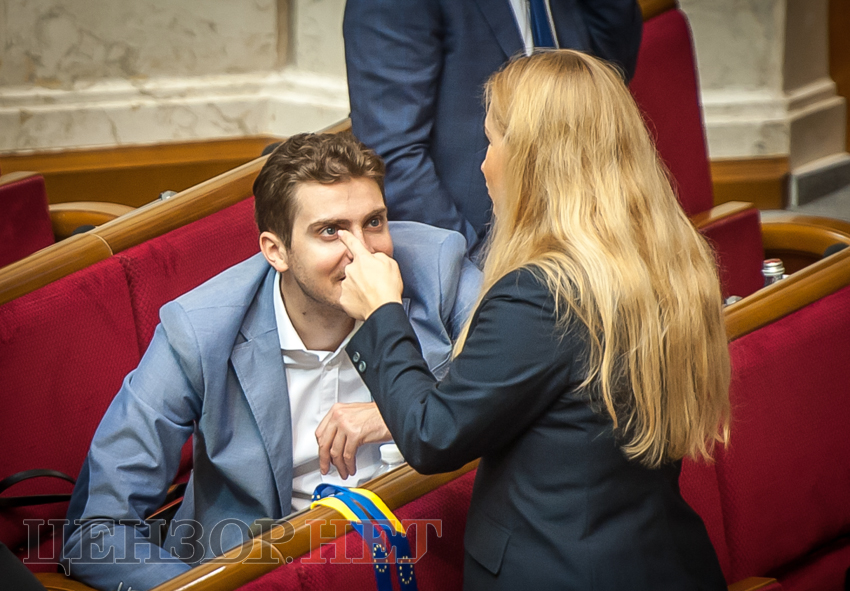 Марія Матіос (БПП) спілкується з головою фракції НФ Максимом Бурбаком.