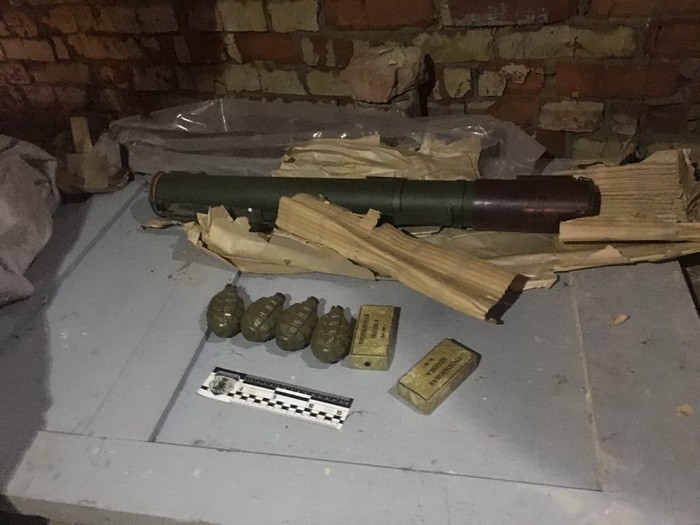 Під час санкціонованого обшуку в будинку співробітники СБУ вилучили гранатомет РПГ-22, чотири гранати Ф-1 і дві тротилові шашки.