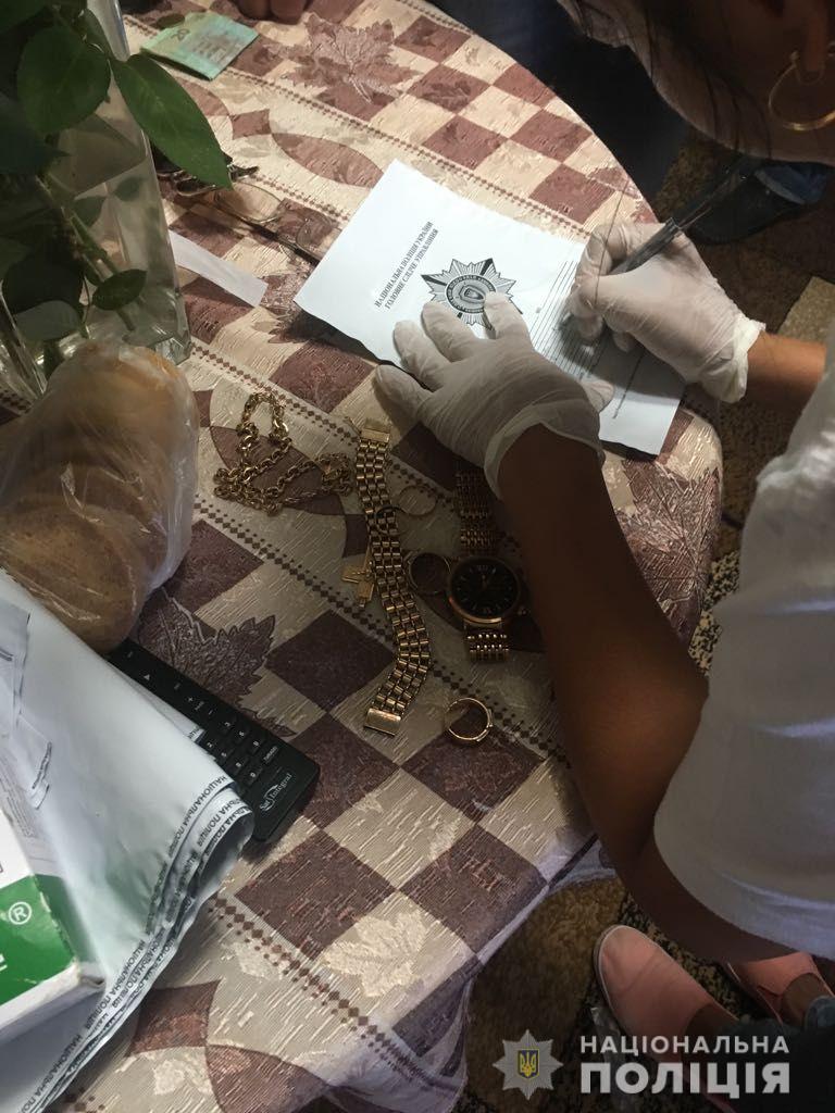 Під час затримання домовласниця намагалася позбутися речових доказів і встигла знищити частину наркотиків. Під час обшуку правоохоронцям вдалося вилучити 250 мл особливо небезпечного наркотичного засобу опію. Також поліцейські знайшли в будинку 7 ампул лікарського засобу "Морфін" і ймовірно здобуті злочинним шляхом ювелірні вироби на загальну суму понад 250 000 гривень, 60 000 гривень готівкою і помпову рушницю з боєприпасами.