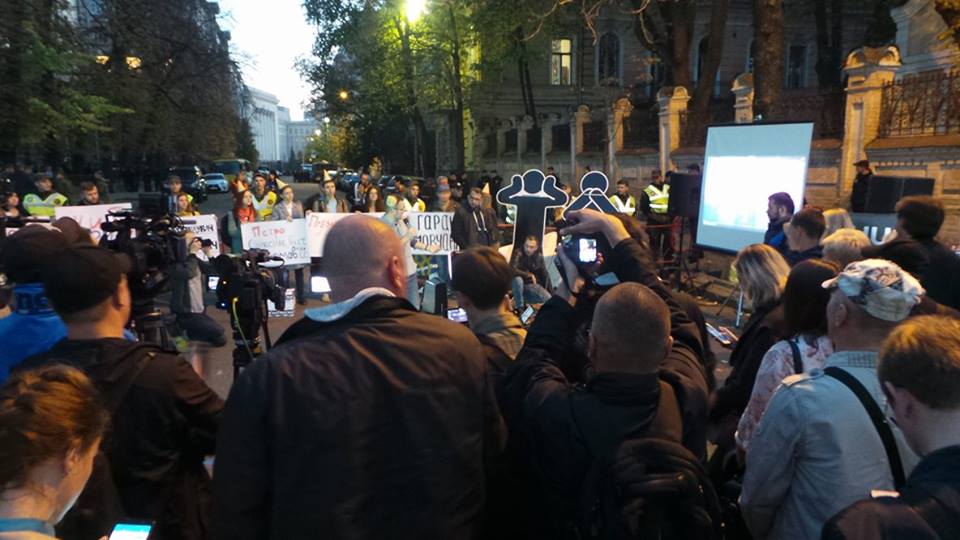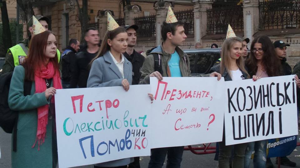 На вулиці Банковій, біля Адміністрації президента відбулася акція з нагоди дня народження проекту журналістських-розслідувачів BIHUS-info, які опублікували матеріал про заступника глави СЗР Сергія Семочка.