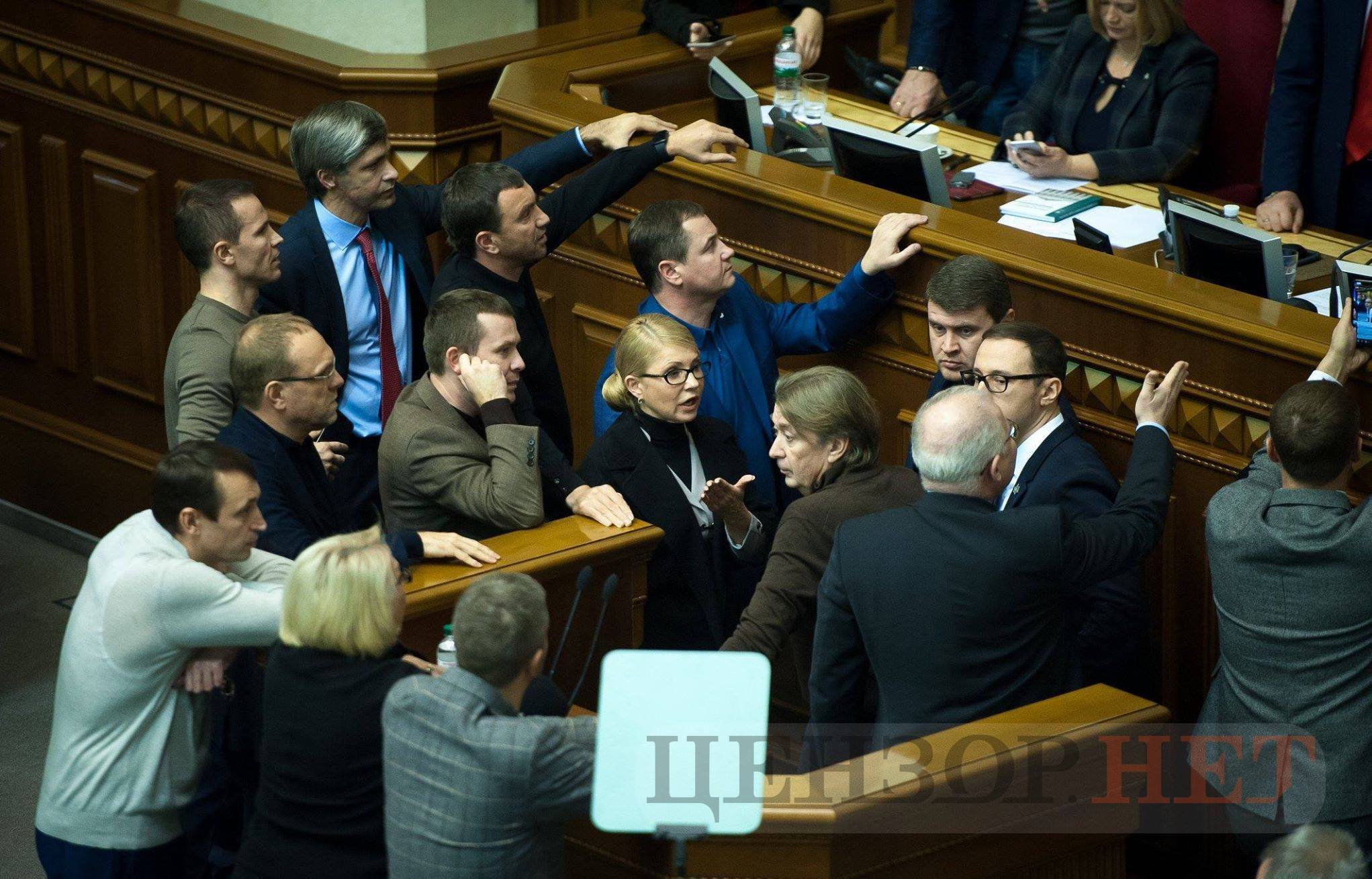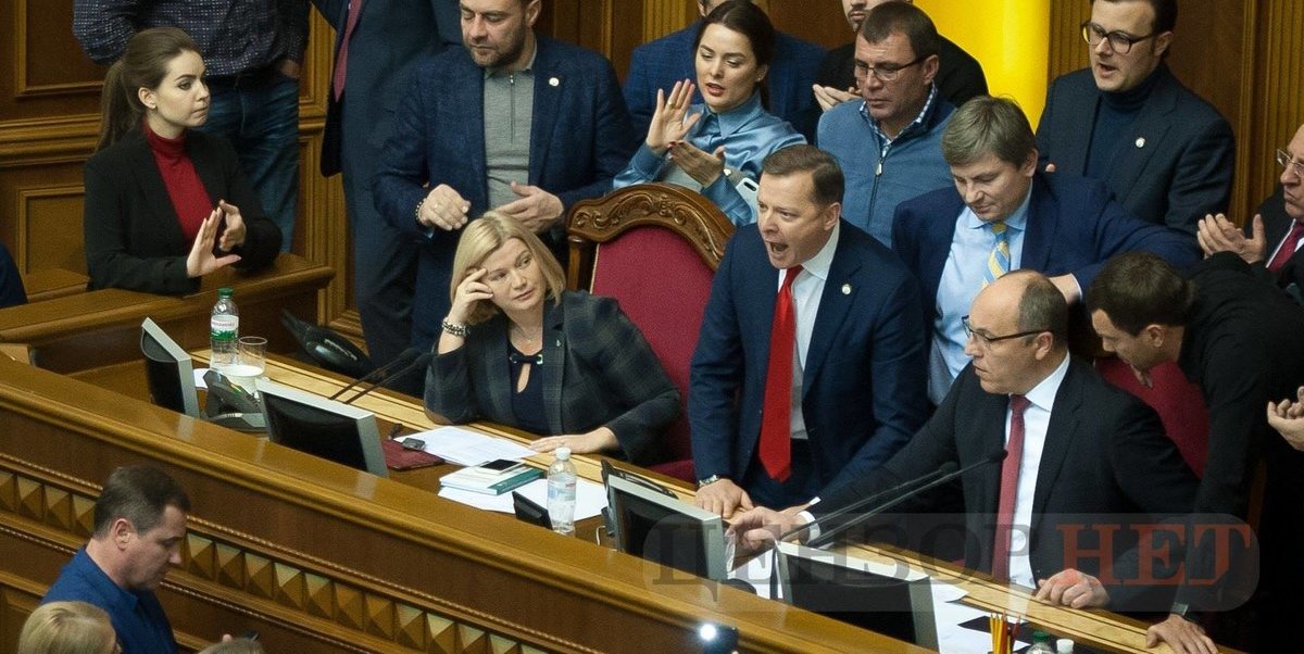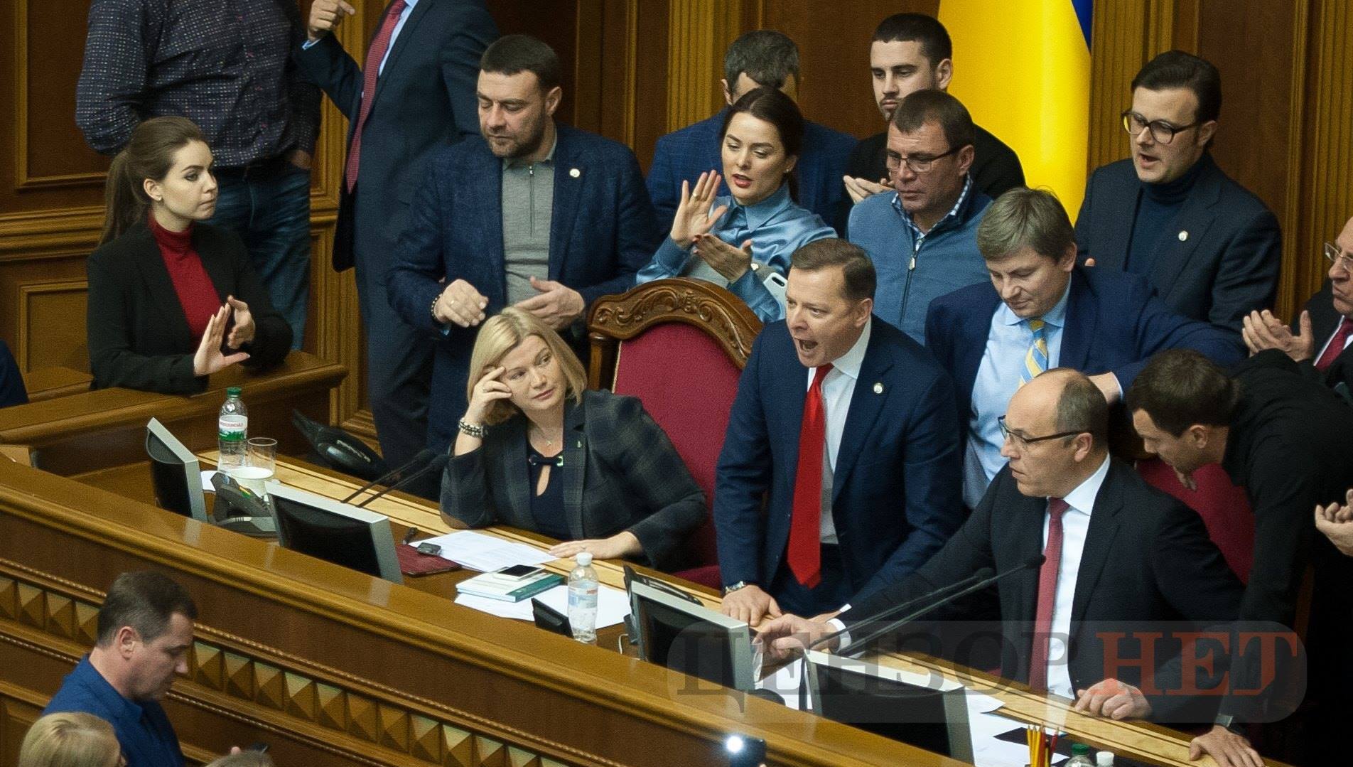 Ледь відкривши засідання, спікер Андрій Парубій опинився оточений нардепами із "Радикальної партії" і "Батьківщини", які вимагали консультацій із президентом Петром Порошенком.
