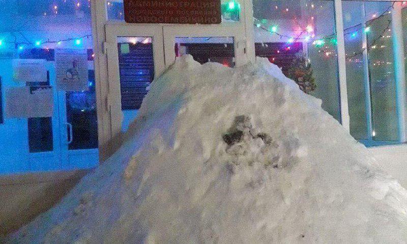 Так, гора снігу біля входу з'явилася вночі 27 грудня. Її фотографію виклала в "Твіттер" місцева жителька Ганна Владимірова з підписом "подяка за якісне прибирання".