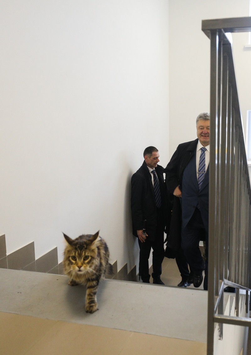 Петро Порошенко разом із військовими за традицією, перш, ніж зайти до гуртожитку, запустили до приміщення кота. Президент та військовослужбовці оглянули приміщення нового гуртожитку та ознайомилися з умовами проживання. Глава держави поцікавився, в яких умовах контрактники проживали до цього і чи задоволені вони новою оселею.