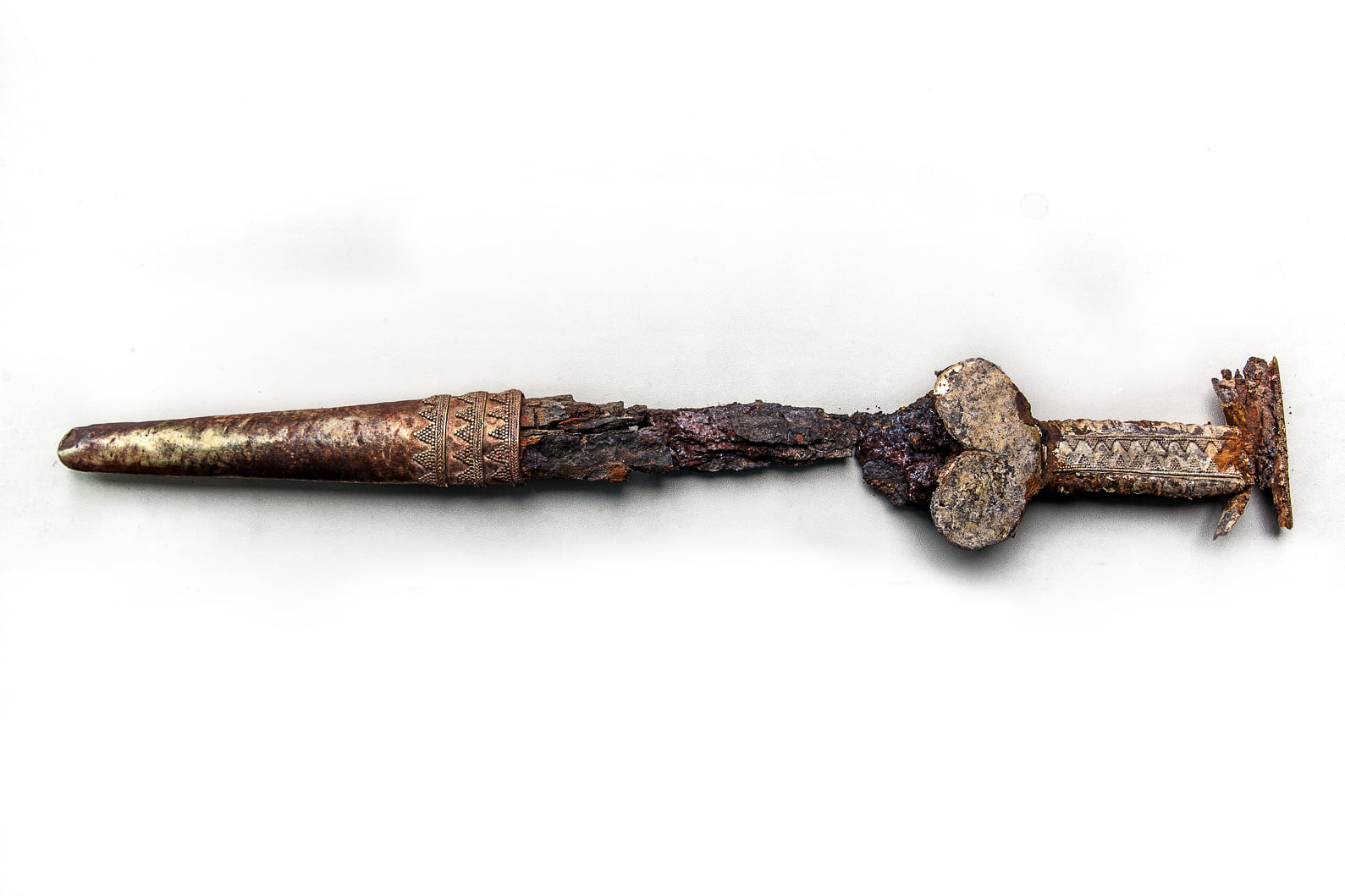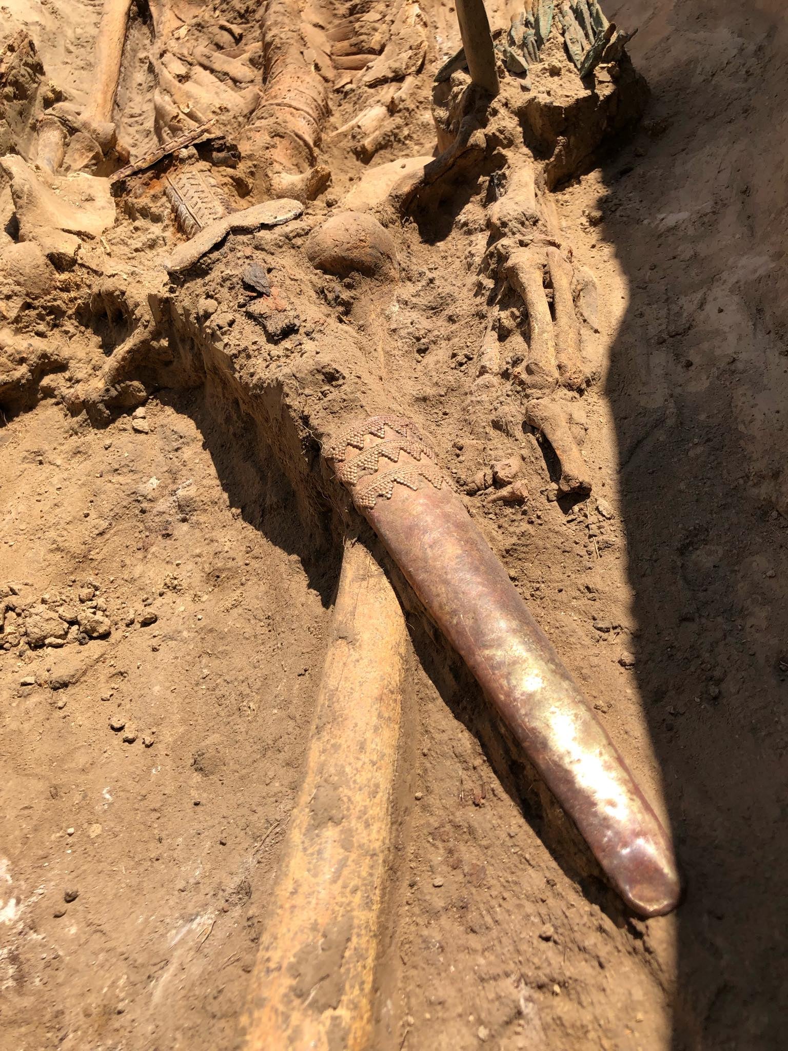 Крім того, в цьому похованні археологи знайшли рідкісну для скіфів сіроглиняну амфору, уламки кістяних псаліїв, застібки кінської вуздечки, залізну бойову сокиру, бронзові та кістяні стріли, одна з головних знахідок - скіфський короткий меч акінак із золотими обкладками, листами руків’я, перехрестя та ковпачком для вістря.