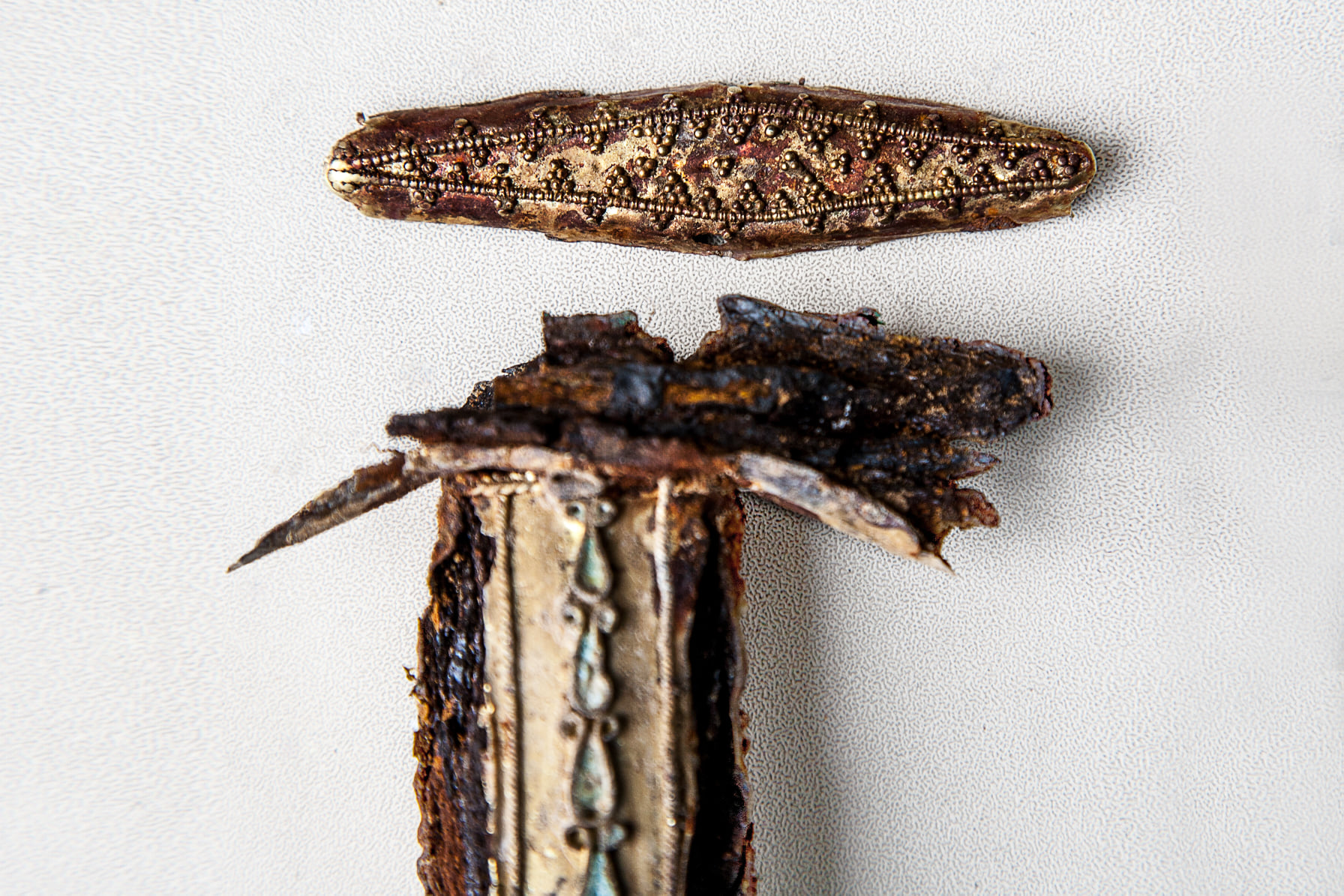 Також в могилі юнака знайшли прикраси - намисто зі склопасти, підвіски з зубів благородного оленя, золота сережка та золота підвіска із крейдяною вставкою.
