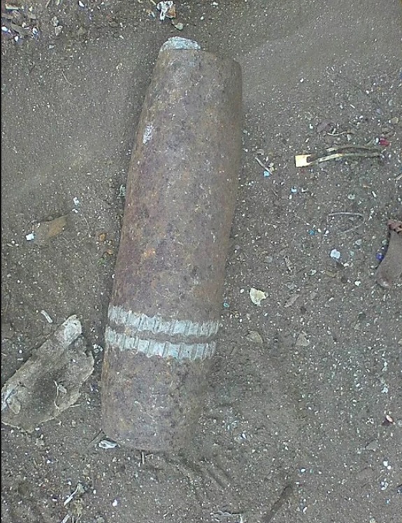 3-4 фото - 76-мм ОФ советский снаряд, стреляный но неразорвавшийся и обезвреженый - без взрывателя. Тоже неопасен.