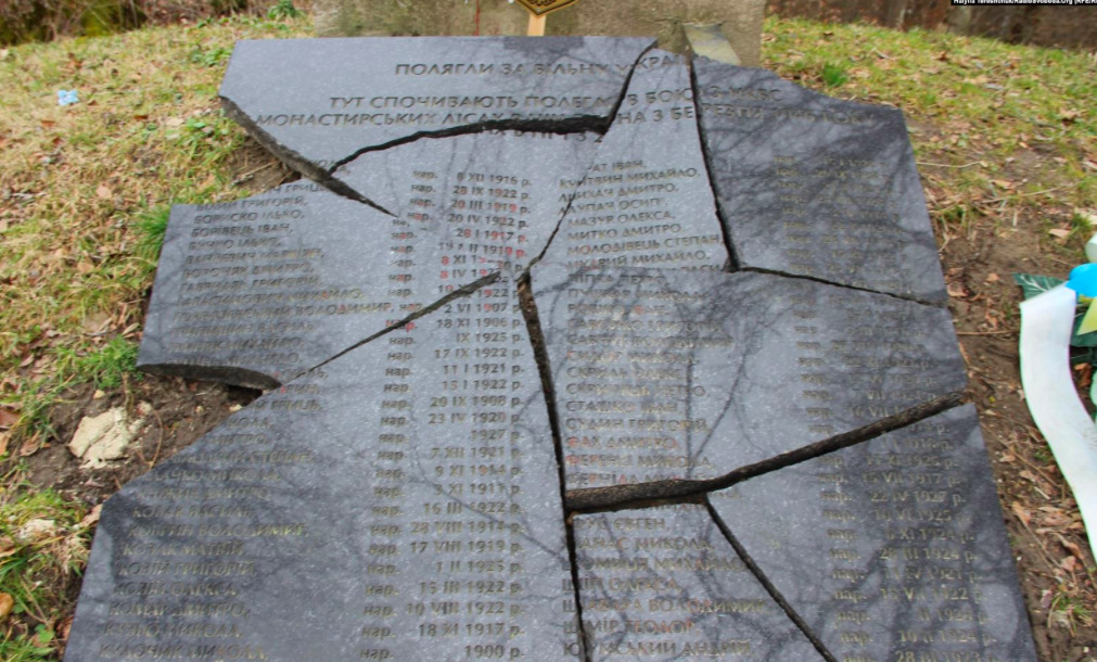 Нагадаємо, 20 січня стало відомо, що вандали знищили плиту на могилі воїнів УПА на горі Монастир у Підкарпатському воєводстві. Уламки плити і зав'язані на деревах українські рушники вандали кинули в яму.