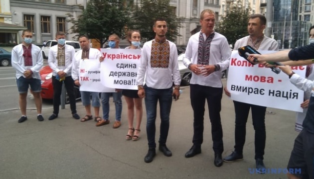 "Ми вважаємо, що українська мова має бути державною і ні суд, ні президент, ніхто при владі не має маніпулювати державницькими символами і цінностями", - сказав депутат Івано-Франківської міськради Володимир Олійник.
