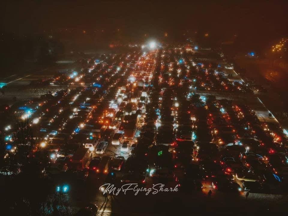 Машини вистроїлися у формі ялинки до опівночі, пишуть у виданні.
