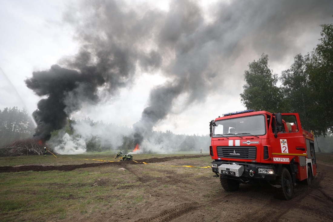 Під час навчань рятувальники також відпрацювали можливий сценарій ліквідації аварії з витоком хімічної небезпечної речовини із залученням броньованої розвідувально-дозорної машини, піротехнічних розрахунків, спеціальної машини радіаційної та хімічної розвідки і спеціальних аварійно-рятувальних автомобілів.