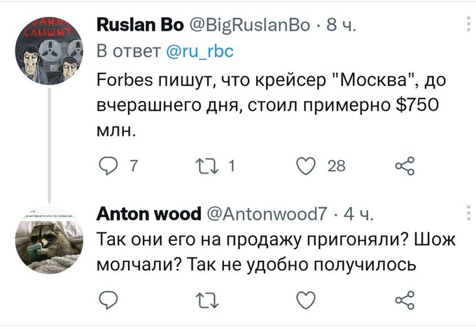 Мало того що ця "жирна ціль" виявилася хваленим "нєпатапляємим" флагманським коритом, але ще і названий "Масква".