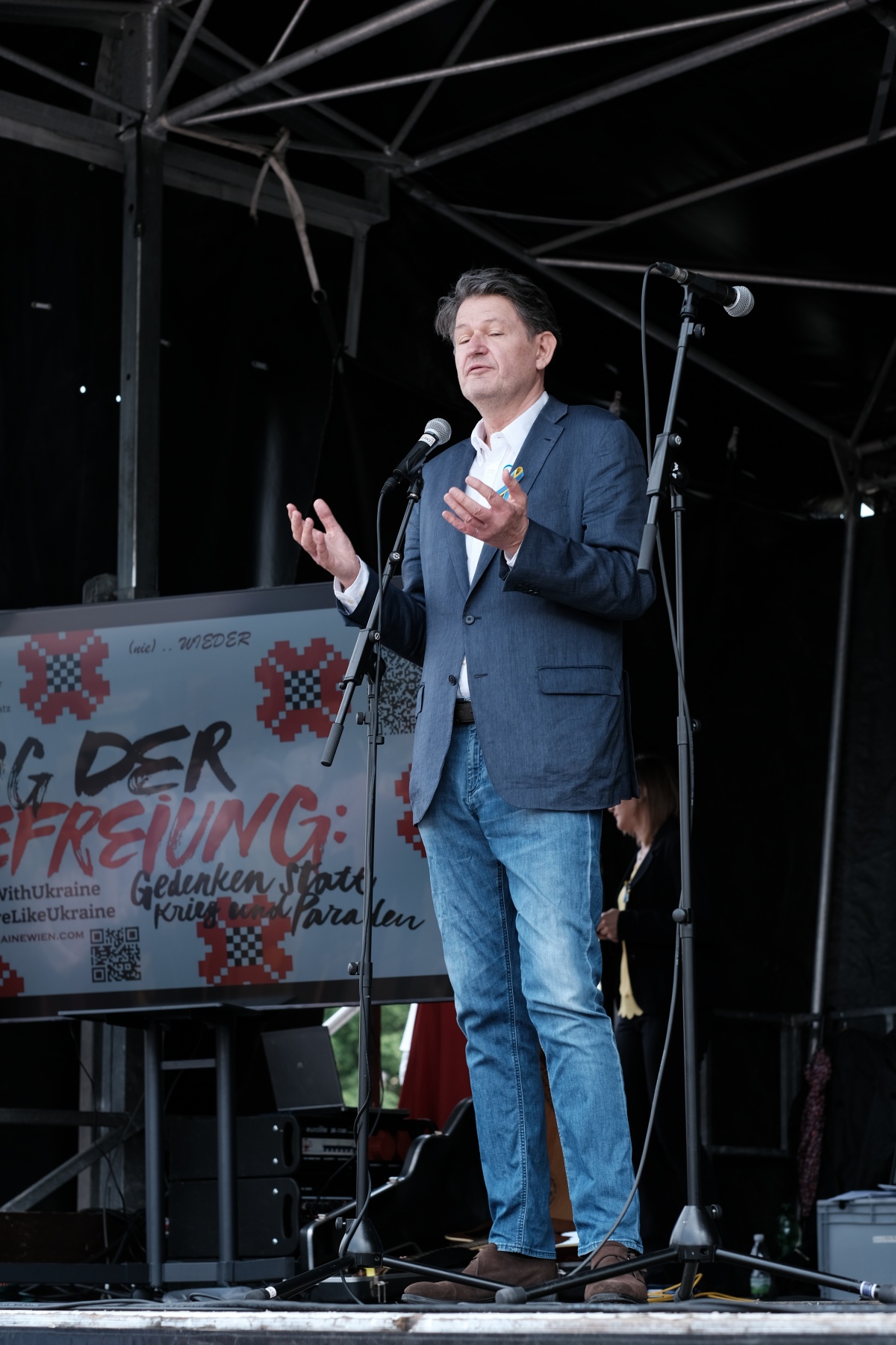 Промови були доповнені виступами українських музикантів, фотовиставкою "Скорботна пам’ять. Фото з України", виставкою творів українських художників з благодійного аукціону Dorotheum, експозицією дитячих малюнків, арт-інсталяціями та ін.