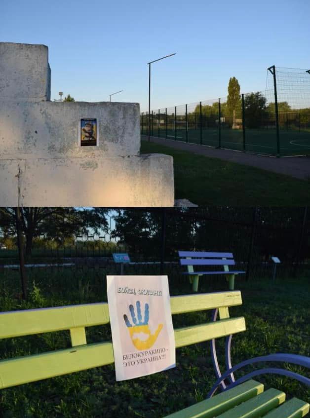 "Бійся, окупанте!", - в Білокуракиному на Луганщині партизани розклеїли патріотичні листівки. ФОТО