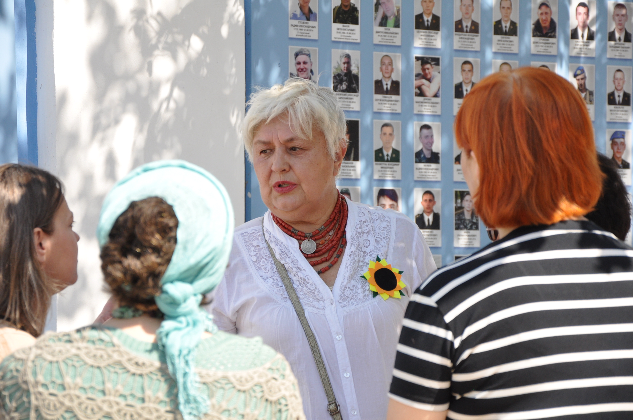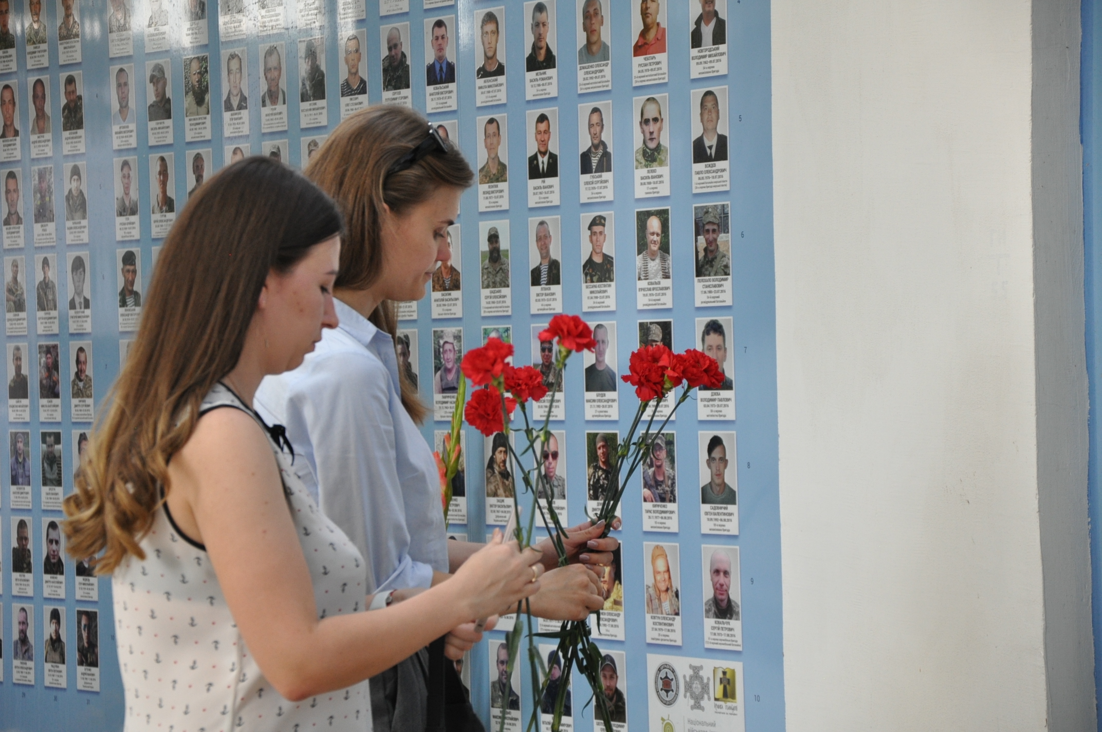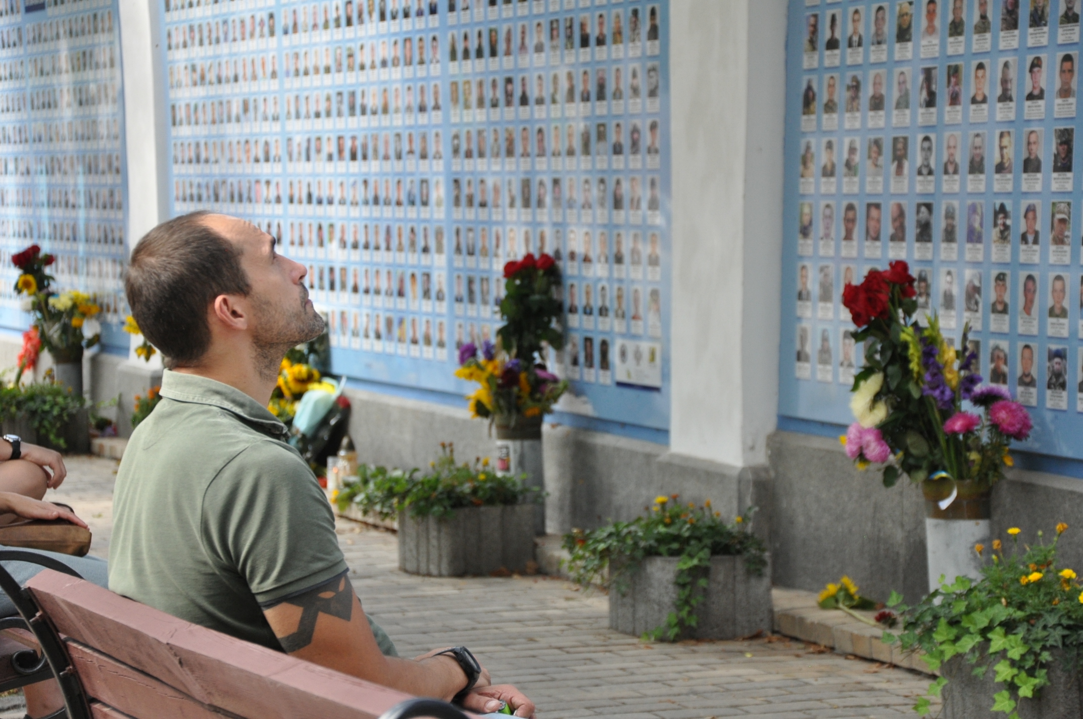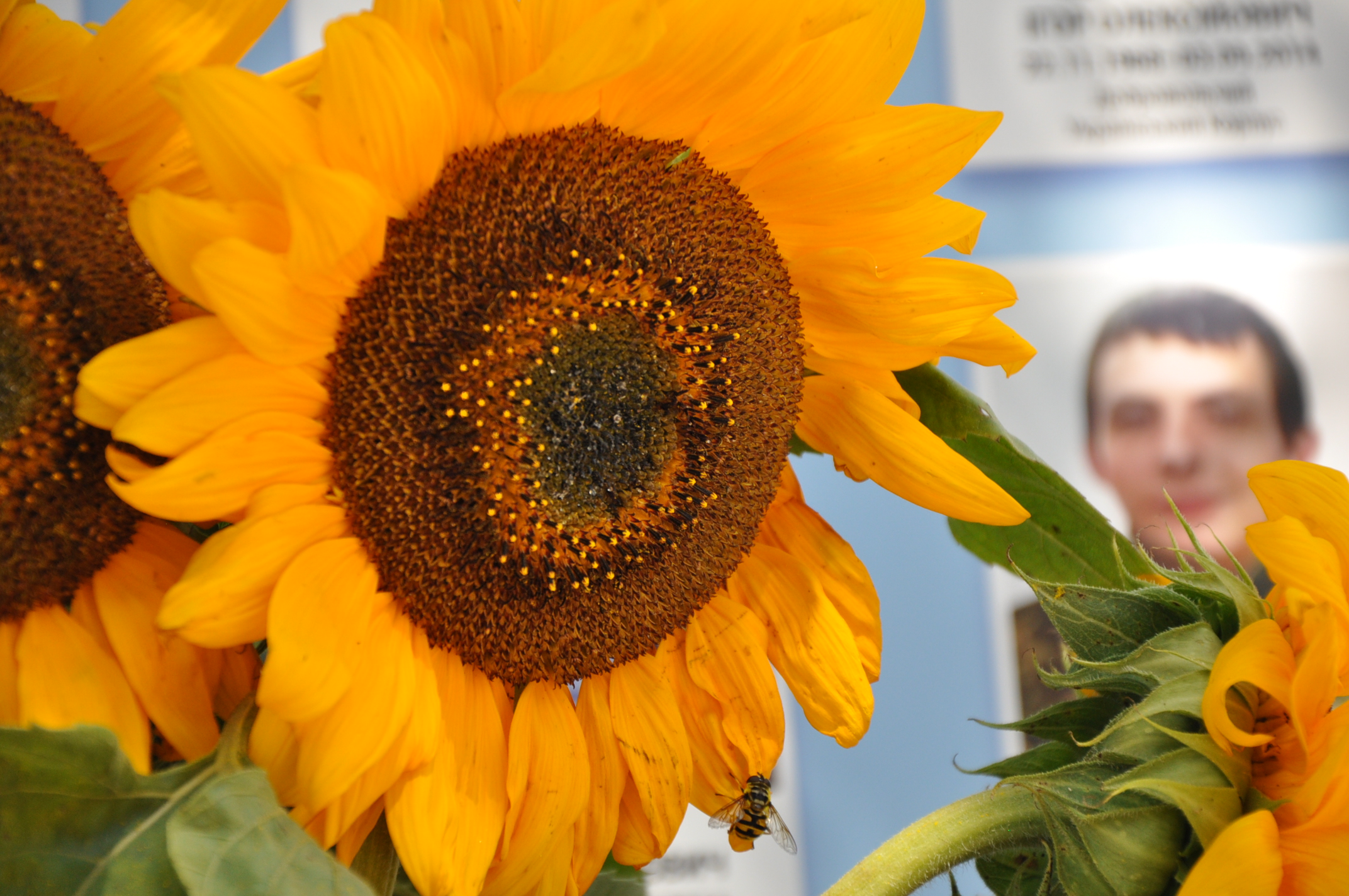 Так, до Стіни пам'яті загиблих героїв поблизу Михайлівського Золотоверхого собору люди несли соняхи та лампадки.
