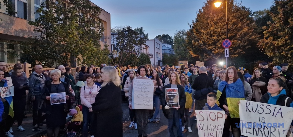 Сотні людей пікетували посольство Ірану у Варшаві на знак протесту проти підтримки Тегераном збройної агресії Росії в Україні.