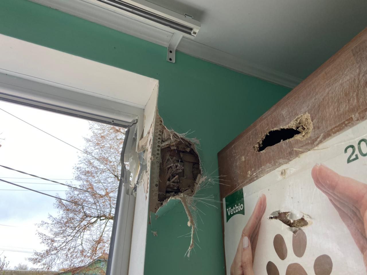 Осколок наскрізь пробив дві стіни у бібліотеці та амбулаторії.