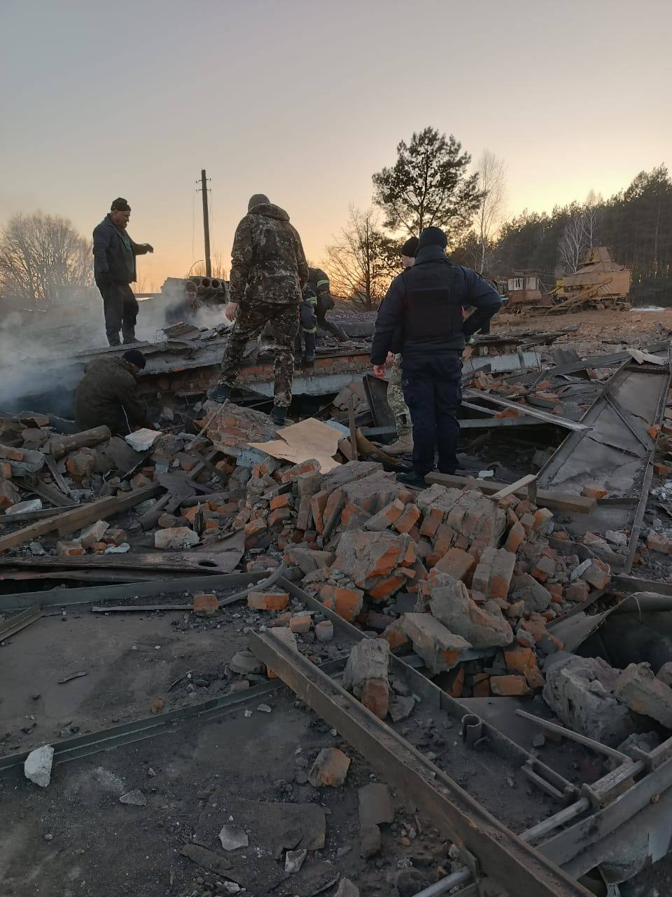 Наслідки влучання авіаракет в промислову будівлю на Чернігівщині, - ОК "Північ". ФОТО