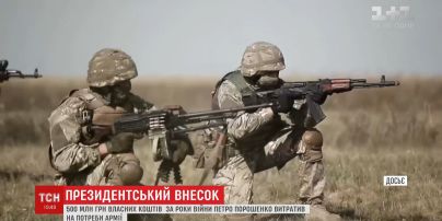 Президент Петро Порошенко витратив на українську армію https://tsn.ua/video/video-novini/stalo-vidomo-skilki-vlasnih-koshtiv-petro-poroshenko-vitrativ-na-potrebi-zsu.html 500 мільйонів гривень власних коштів . Таку статистику наводить інтернет-портал Ukrainian military pages, ідеться в сюжеті https://tsn.ua/vypusky/tsn ТСН.19:30 .