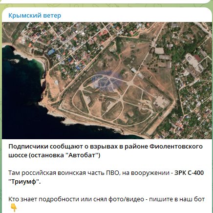 "У районі мису Фіолент у Севастополі якийсь великий бабах. Попередньо, вибух у районі частини радіотехнічної розвідки чи частини ППО - вони розташовані поруч", - ідеться в повідомленні.