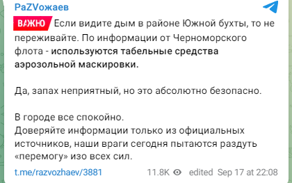 Ввечері 17 вересня в окупованому Севастополі пролунав потужний вибух. ФОТО