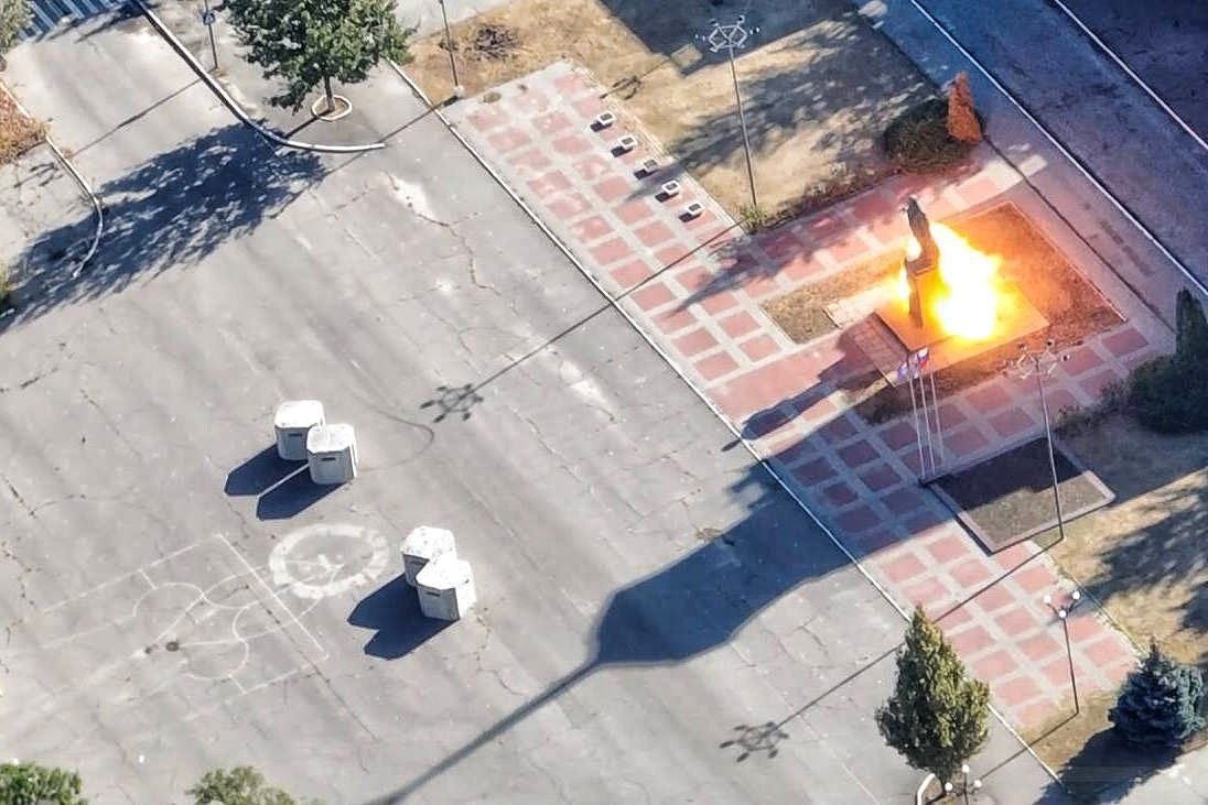 У тимчасово окупованій Новій Каховці Херсонської області партизани здійснили підпал пам’ятника Леніну. На площі біля пам’ятника намалювали тризуб.