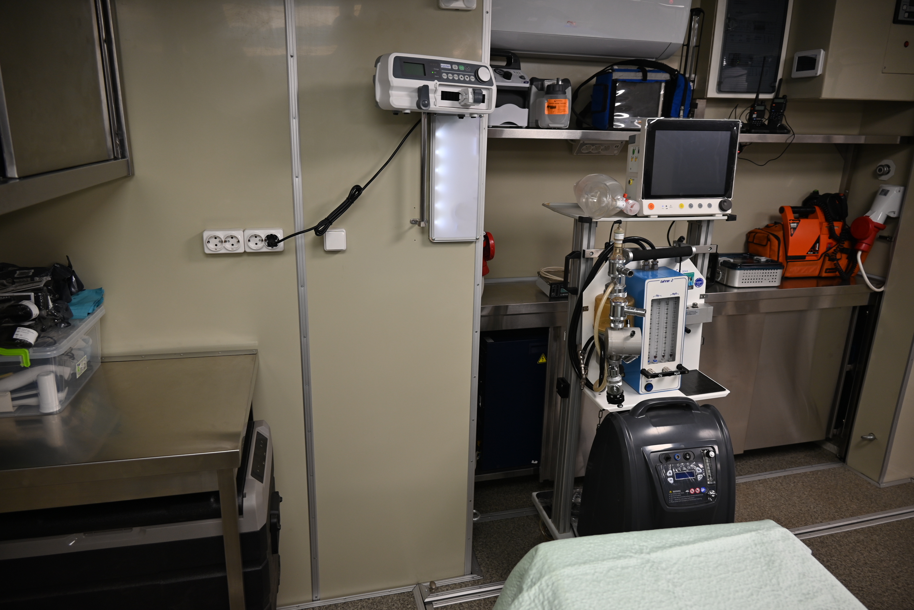 Він оснащений апаратом штучної вентиляції, кисневим концентратором, мультипараметричним монітором, електрохірургічним апаратом, дефібрилятором, стерилізатором, УЗД та ін.