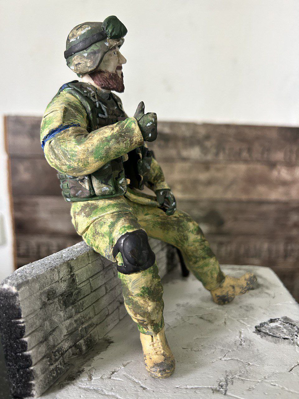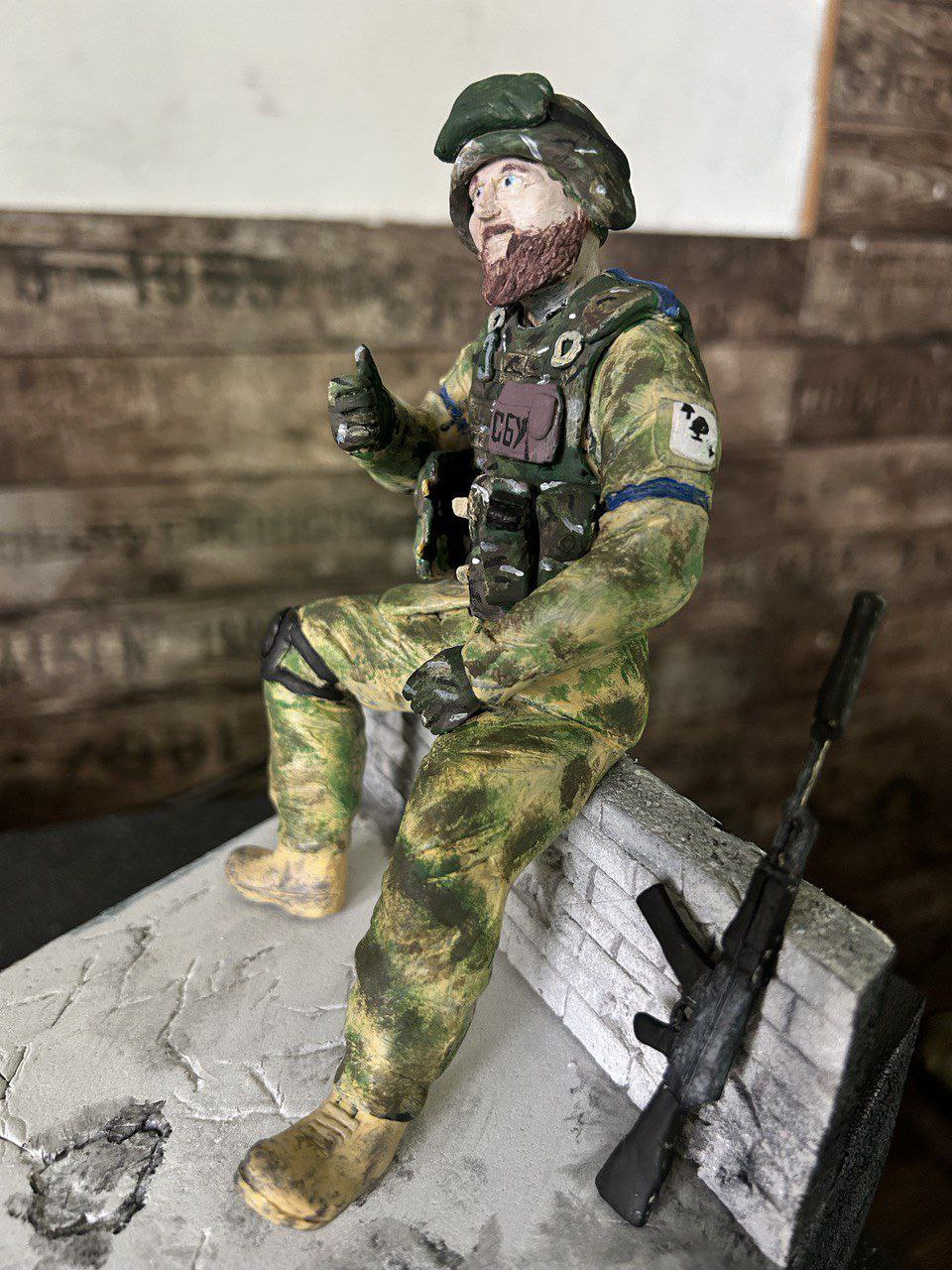 Вона також зазначає, що Дмитро Чернобай створив та передав спеціально для цього проєкту діораму, присвячену легендарному Герою України, славетному захиснику Маріуполя, Сталевому воїну "Азовсталі", полковнику СБУ, автору декількох книжок Богачу Василю, позивний "Домаха".