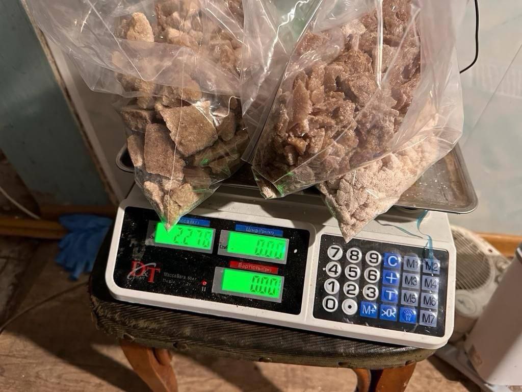 За результатами обшуків правоохоронцям вдалося вилучити десятки кілограмів наркотичних речовин та близько 100 кг фінілнітропропен (прекурсору, з якого виробляють амфетамін).
