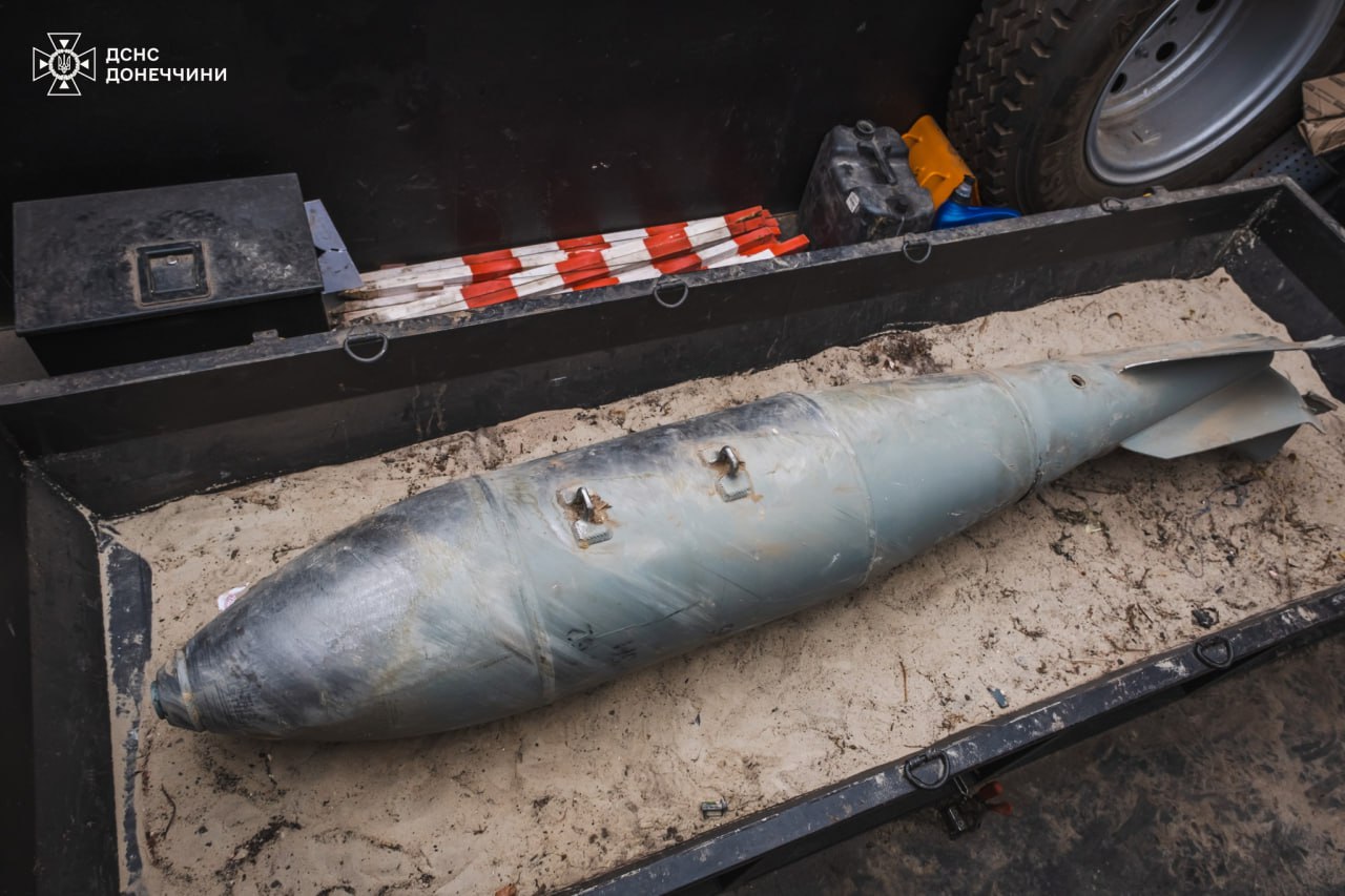 Піротехніки ДСНС вилучили і знищили нерозірвану авіабомбу ФАБ-500 у Костянтинівці на Донеччині, яку окупанти скинули на житловий сектор.