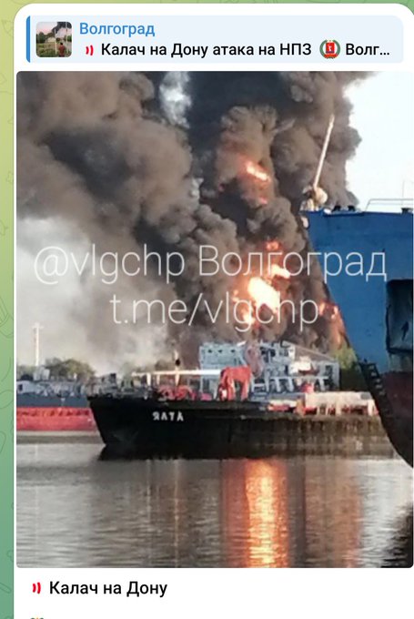 Мешканці Калача-на-Дону заявили, що дронів було декілька, прильоти були в районах цистерн із паливом і хлібозаводу. На місці події виникла сильна пожежа.